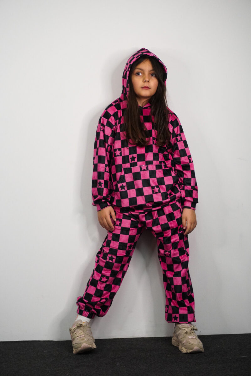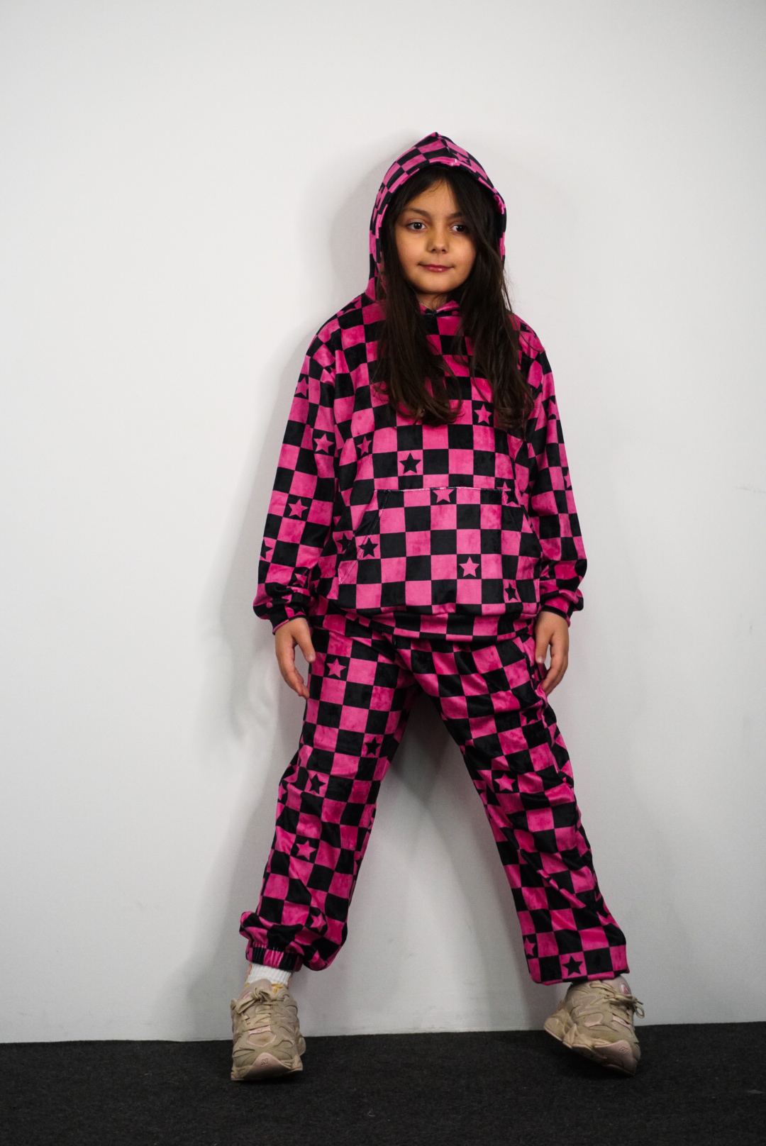Παιδικό Βελουτέ Σετ Taylor Hot Pink and Black Checkerboard Star Print