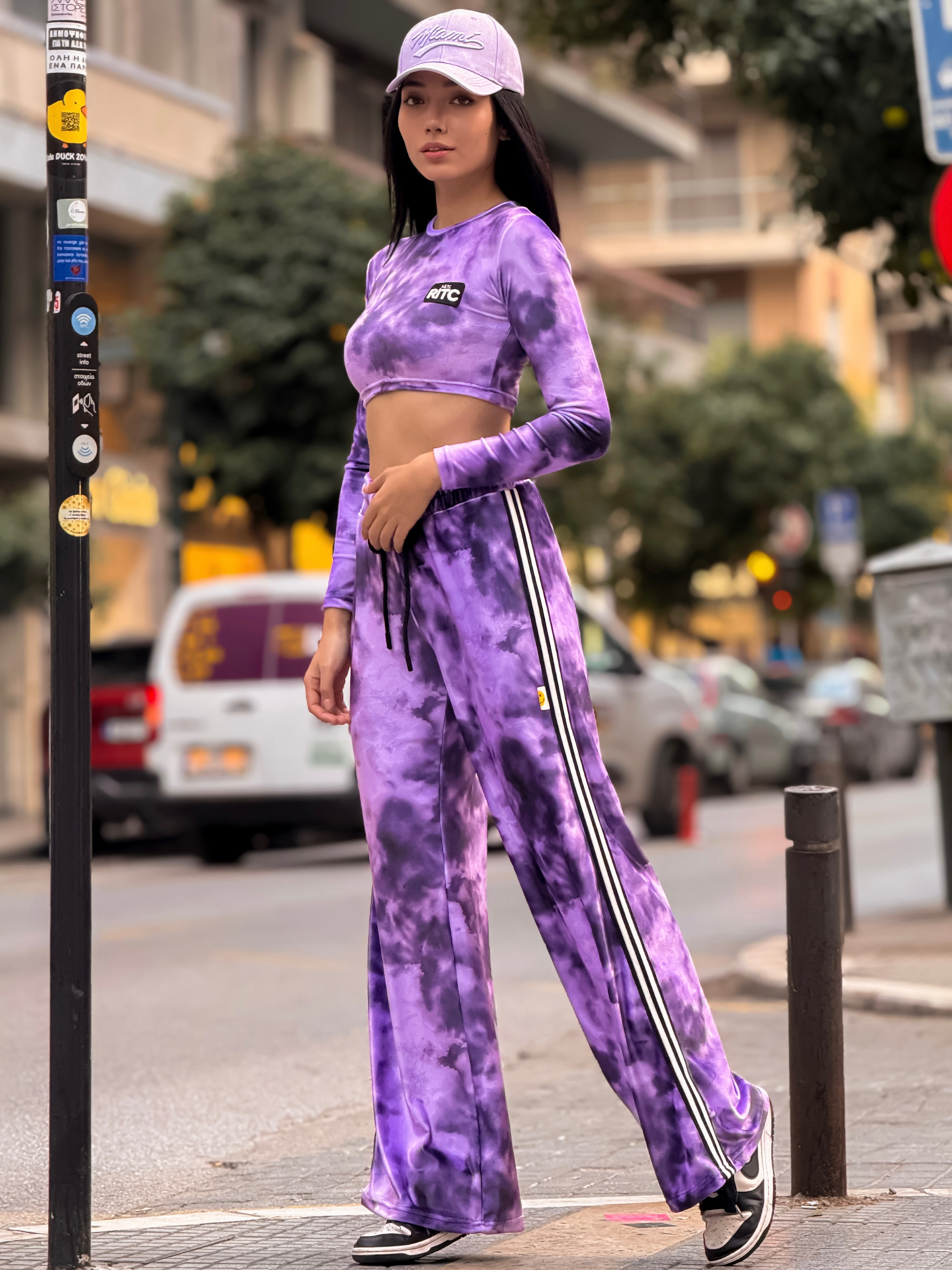 Fashion Limousine | Purple Tie Dye Print Velvet Set Gemma