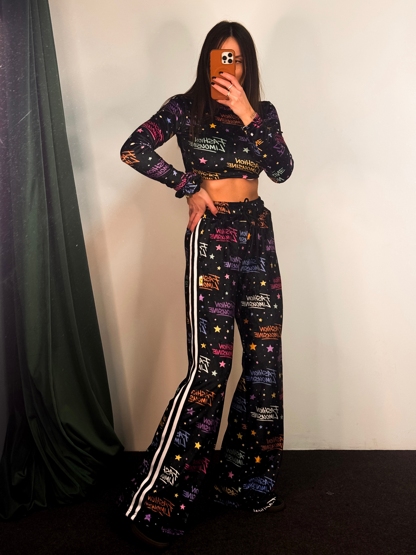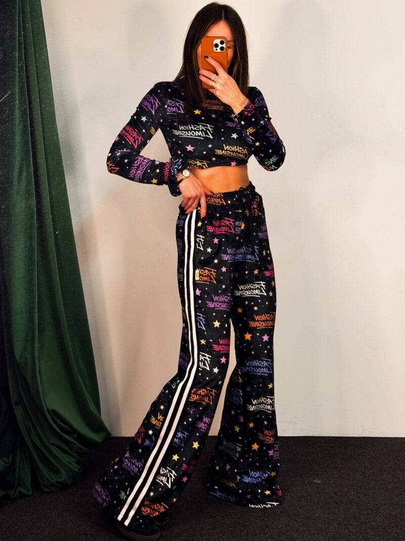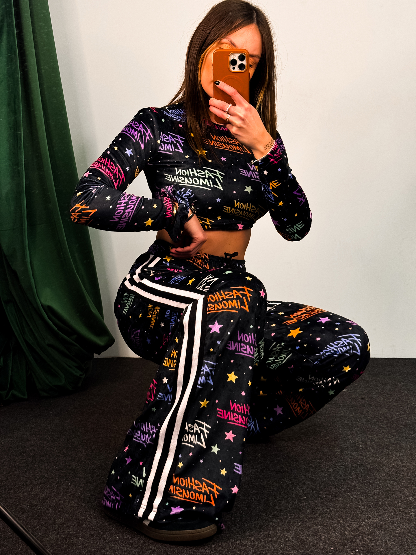 Fashion Limousine | Velvet Crop Set Sophia FL Logo Print