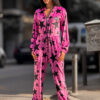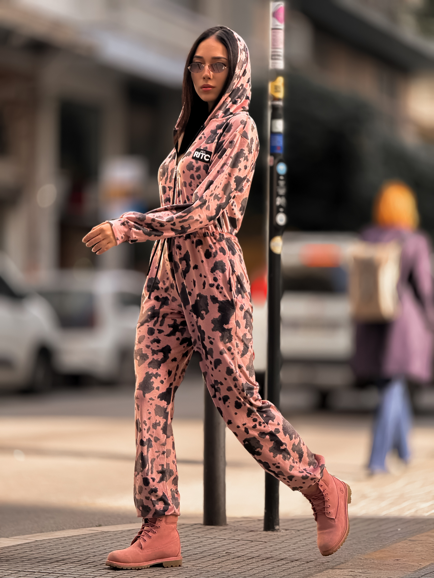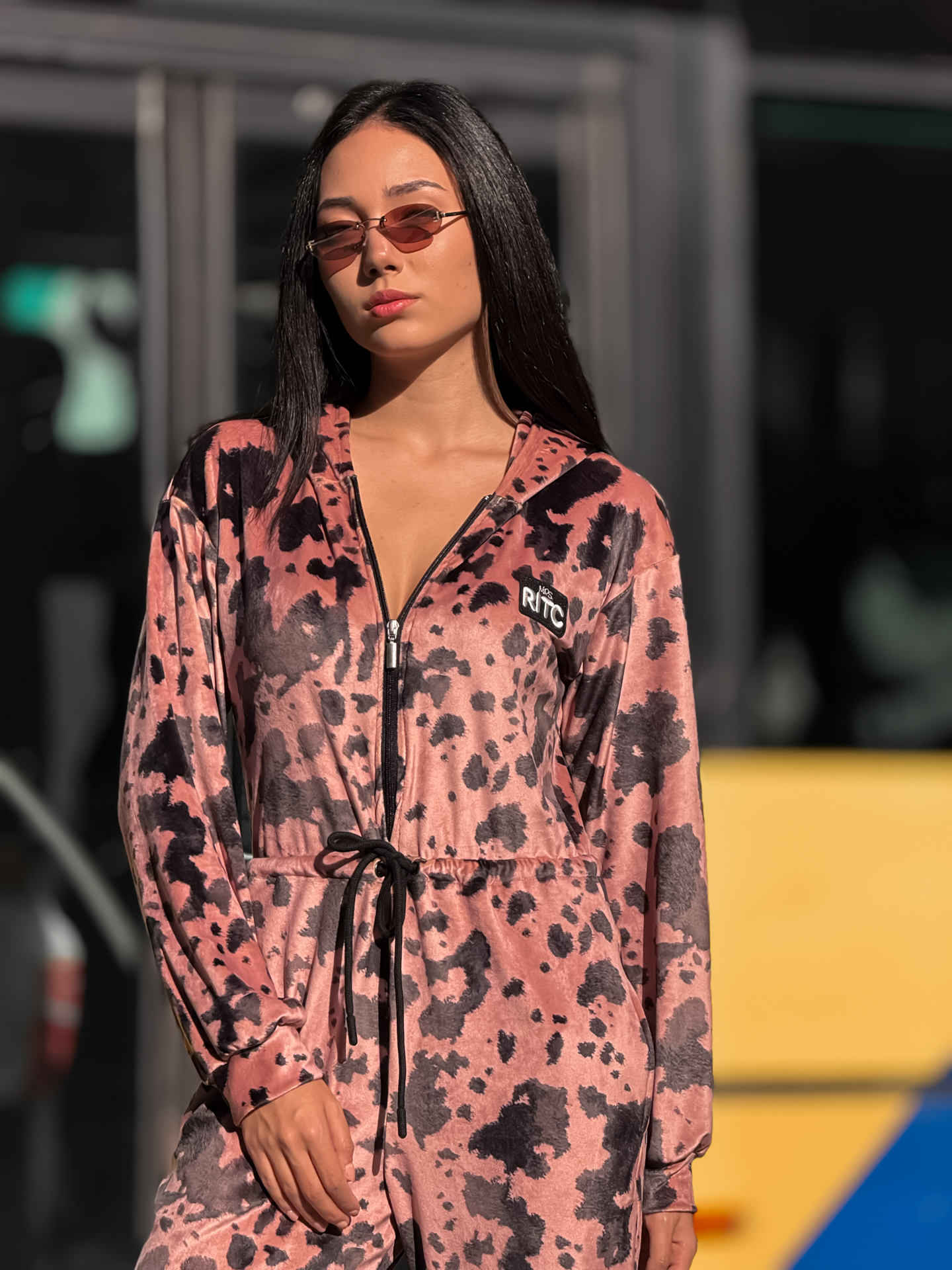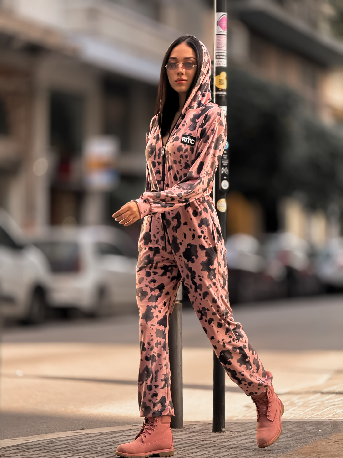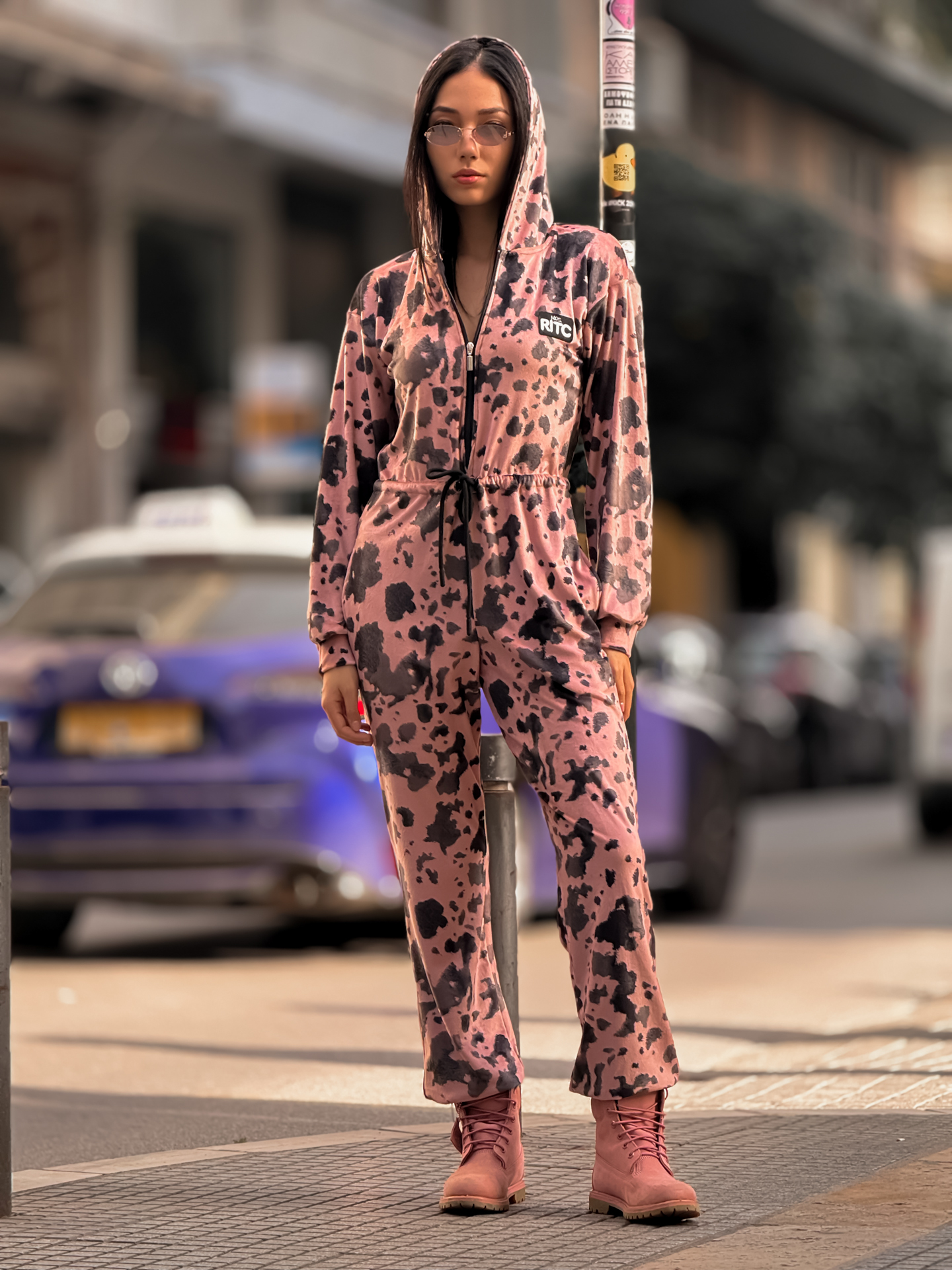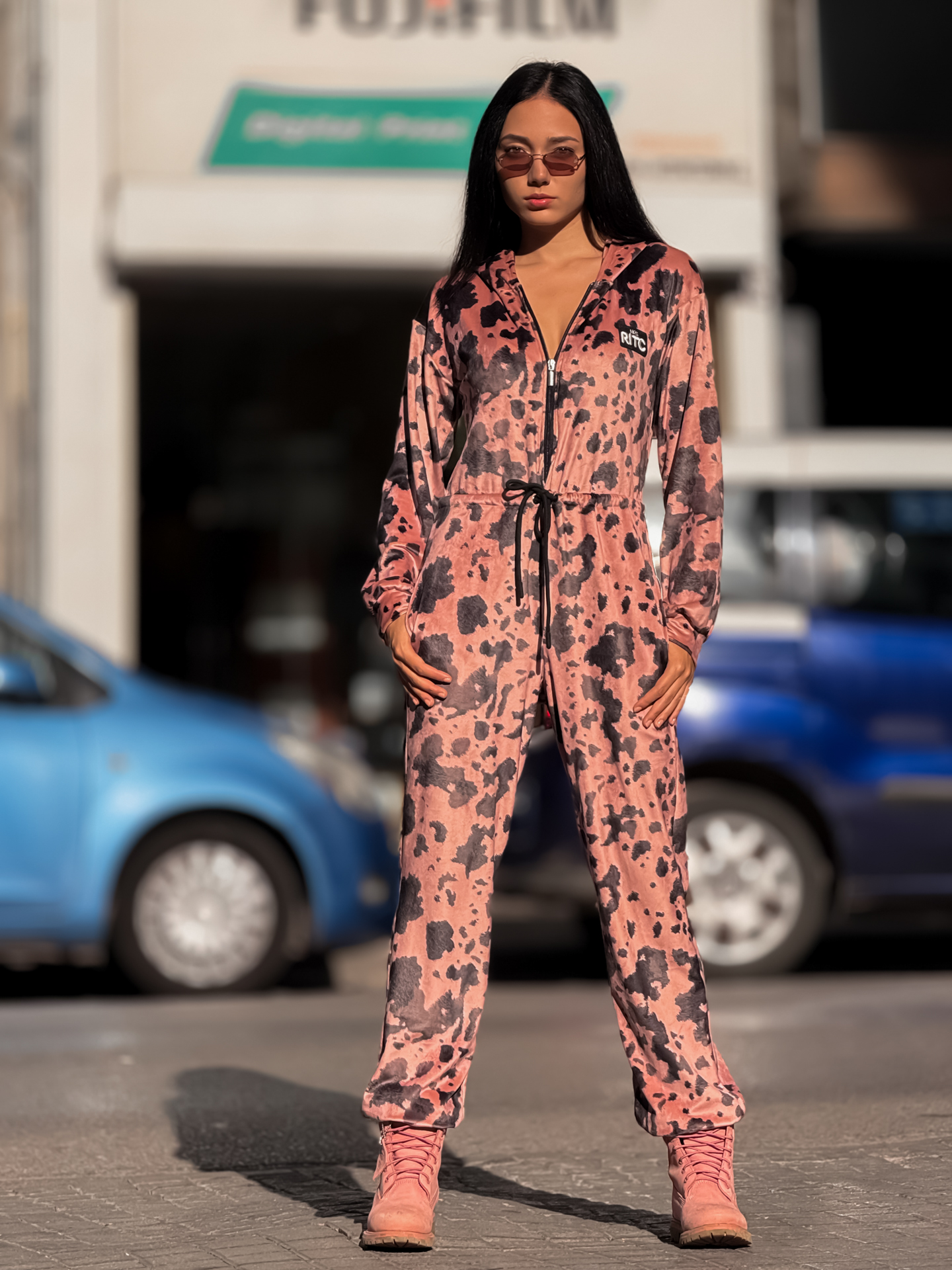 Ολόσωμη Βελουτέ Φόρμα Renata Pink Cow Print