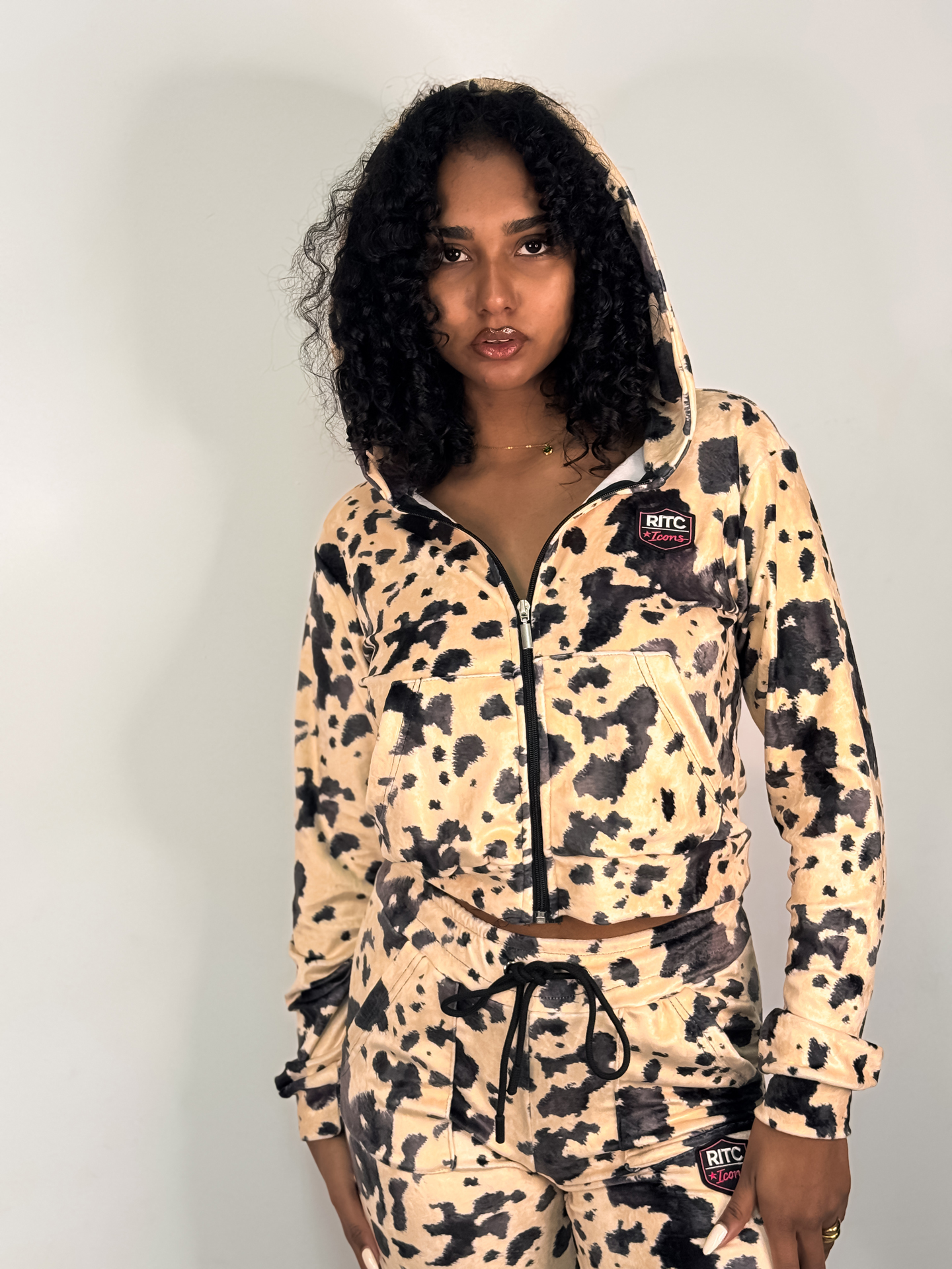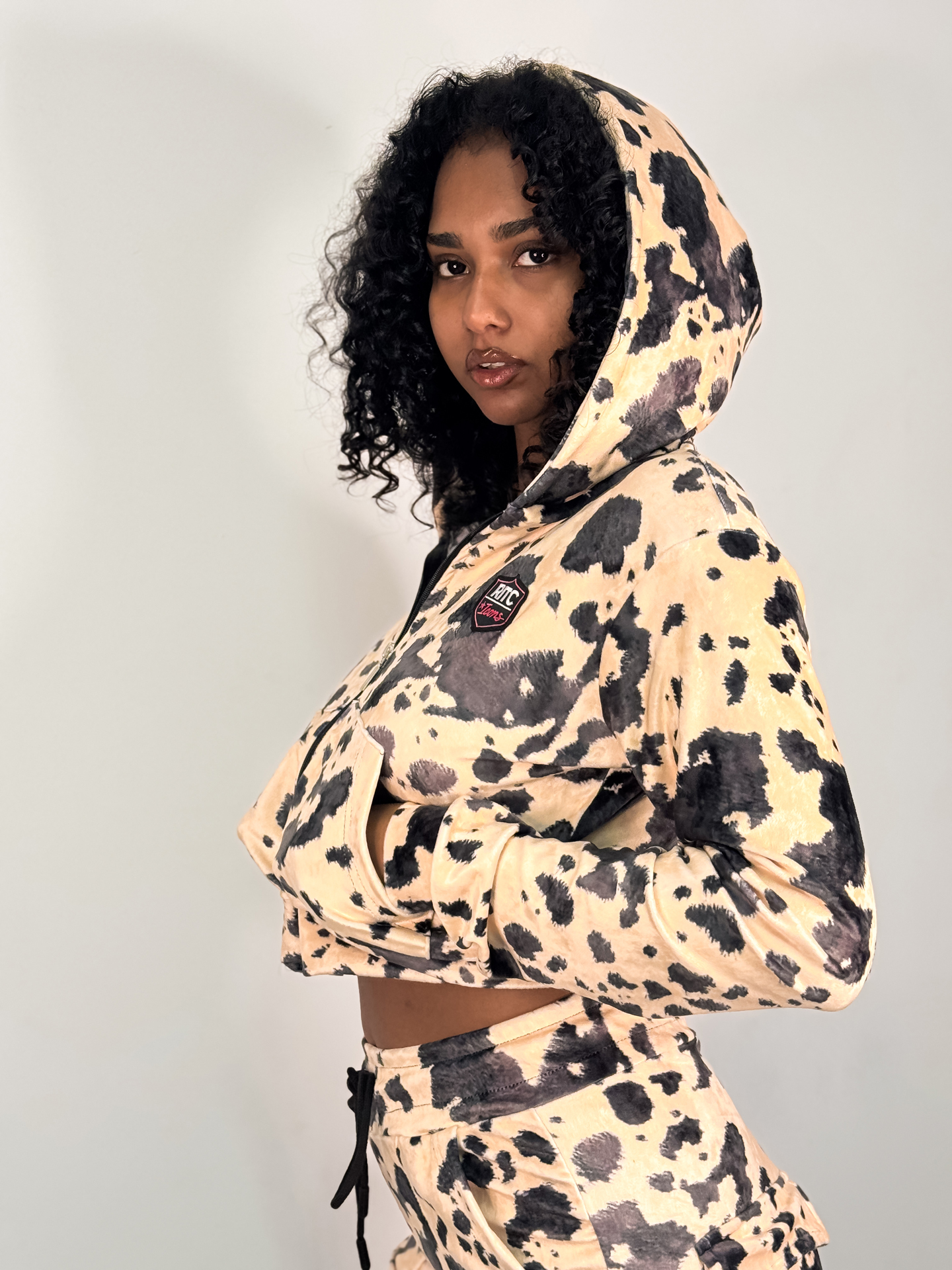Βελουτέ Hoodie Vivian Beige Cow Print
