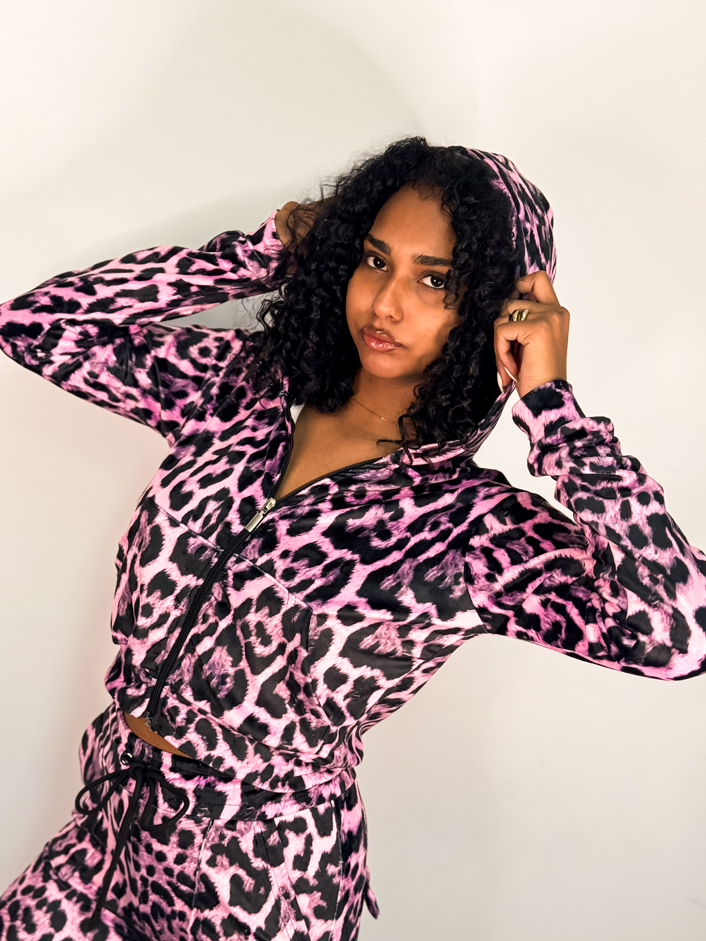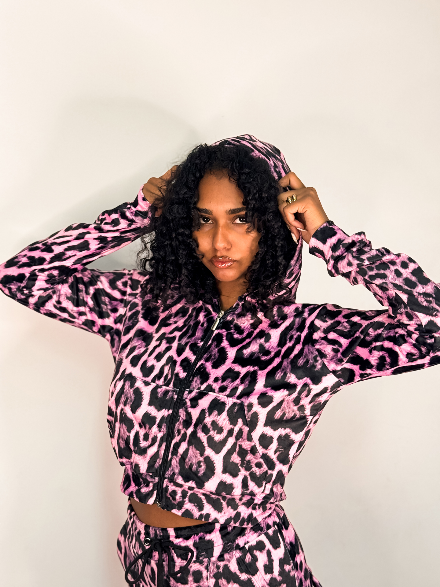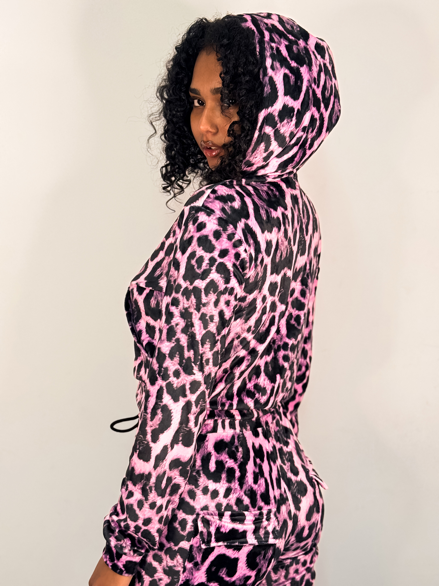 Βελουτέ Hoodie Vivian Pink Leopard Print