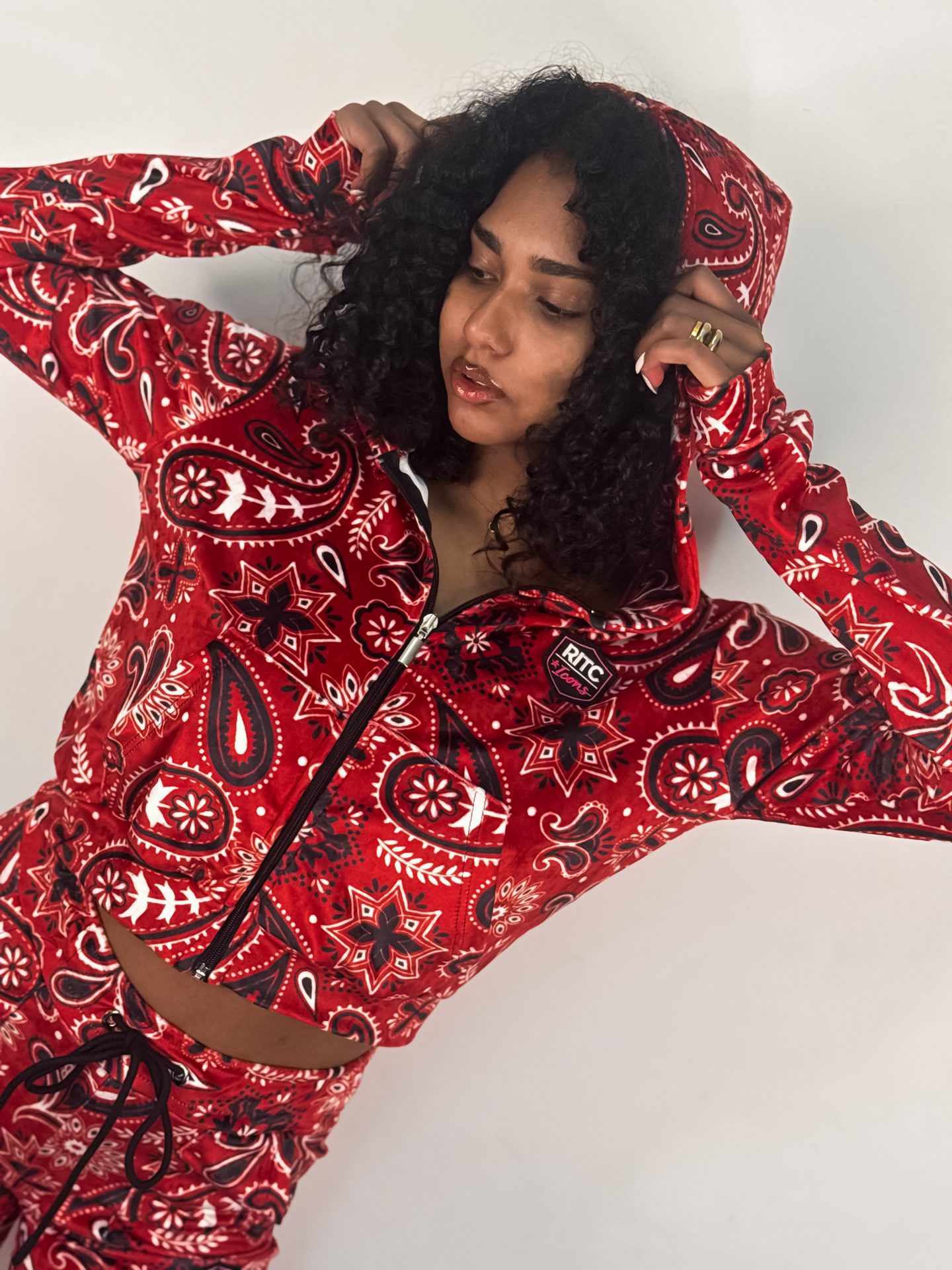 Βελουτέ Hoodie Vivian Red Bandana Print