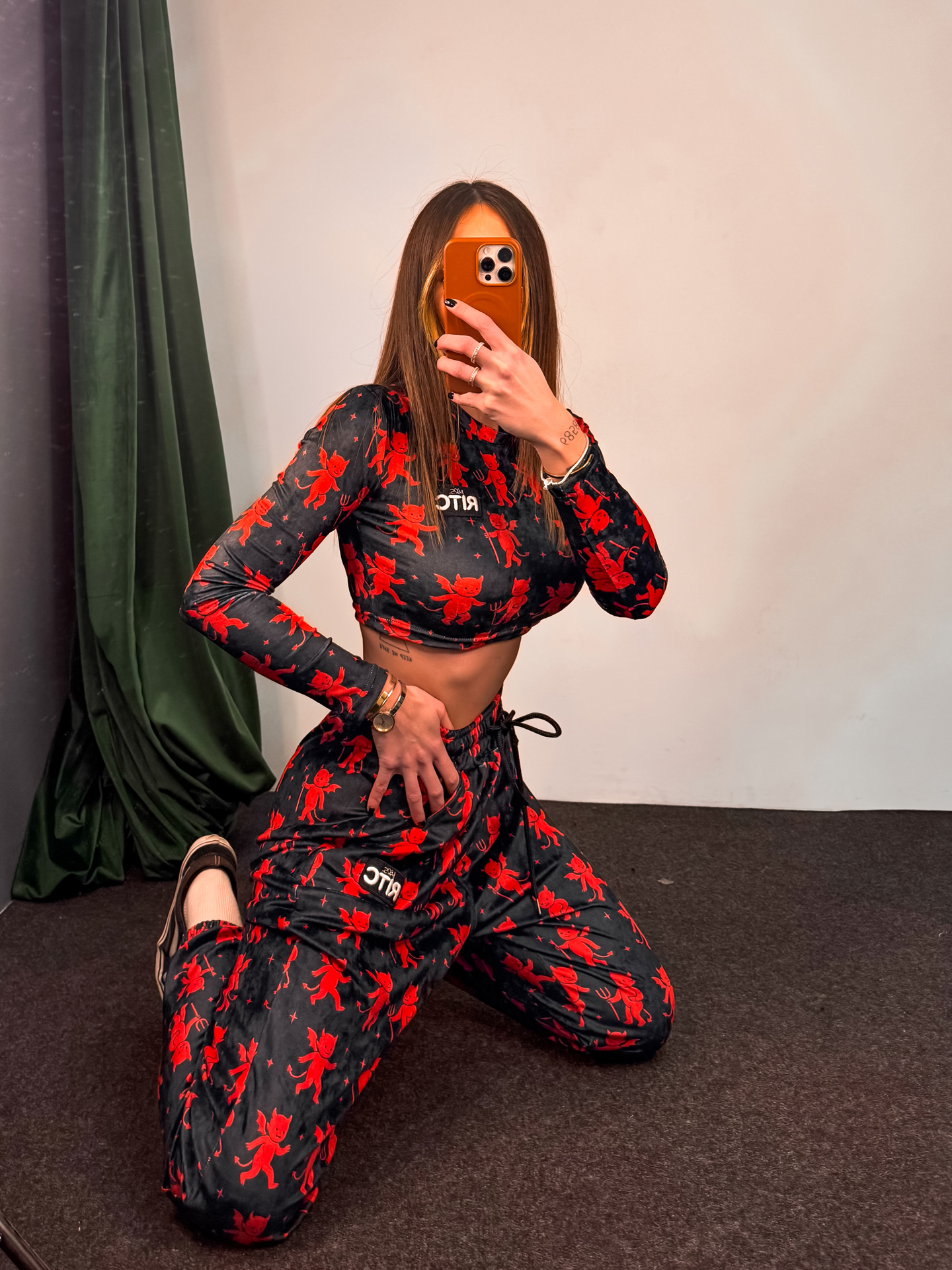 Βελουτέ Crop Longsleeve Set Nina Black – Red Devil Print