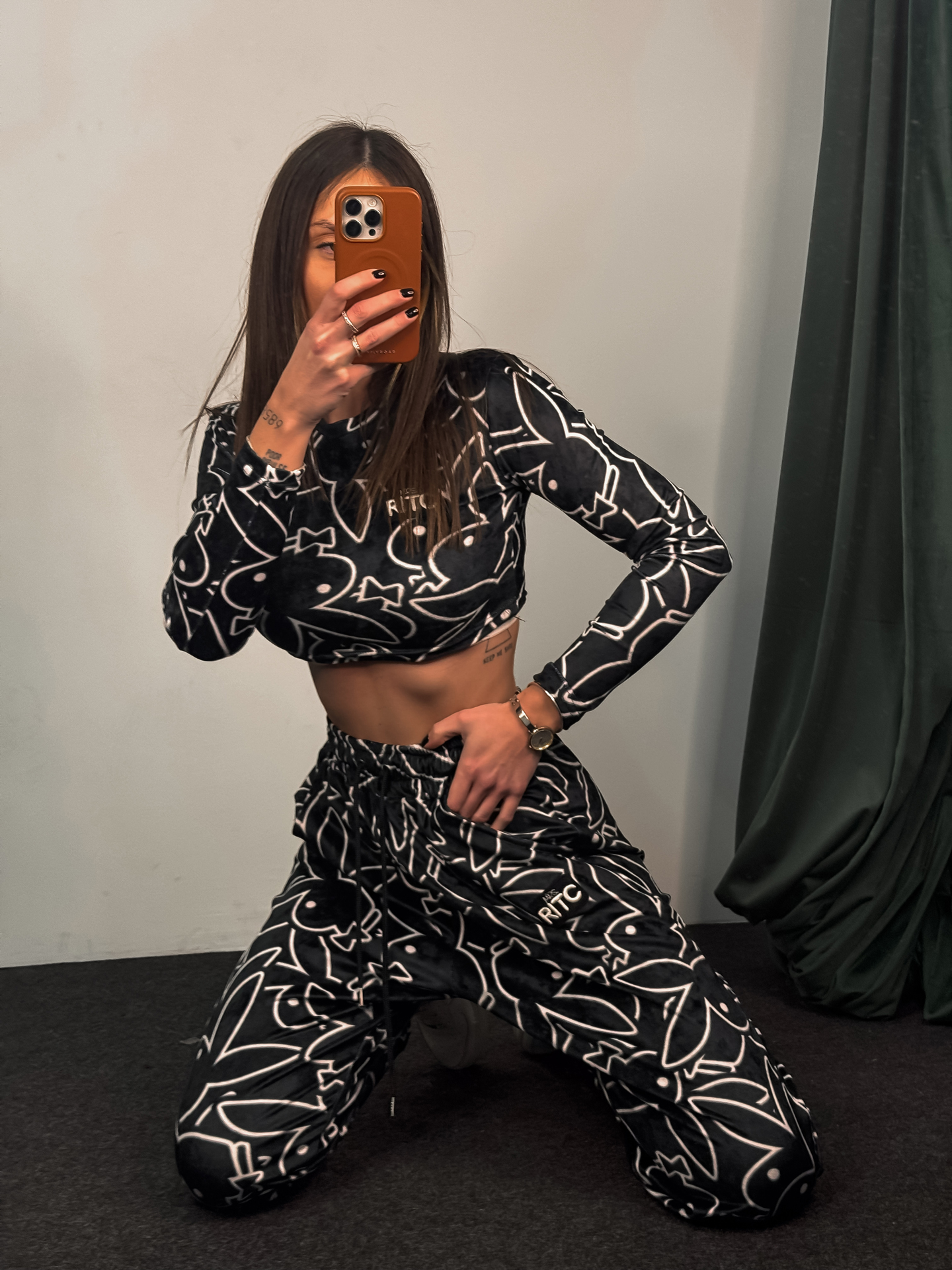 Βελουτέ Crop Longsleeve Set Nina Playboy Bunny Print