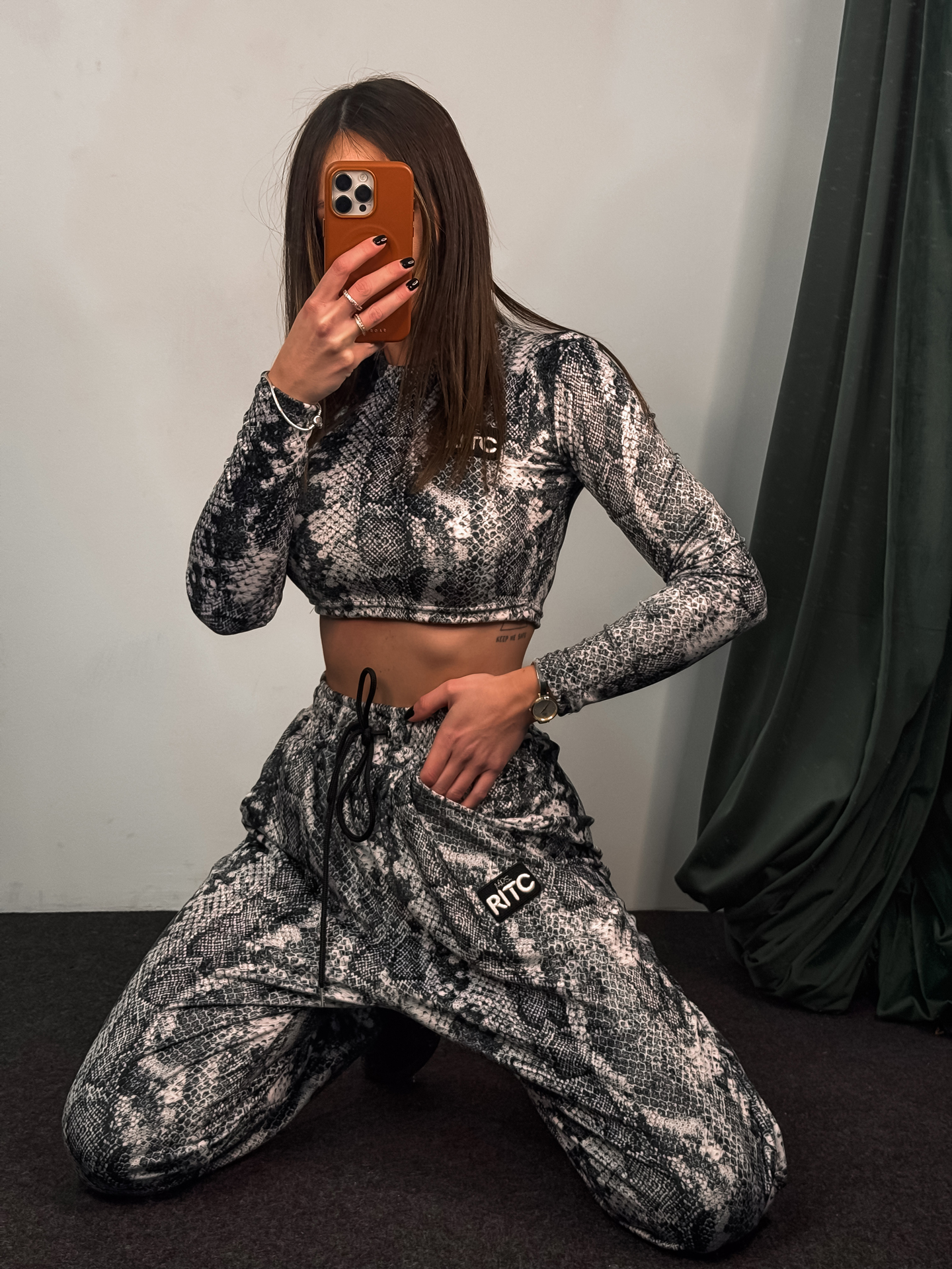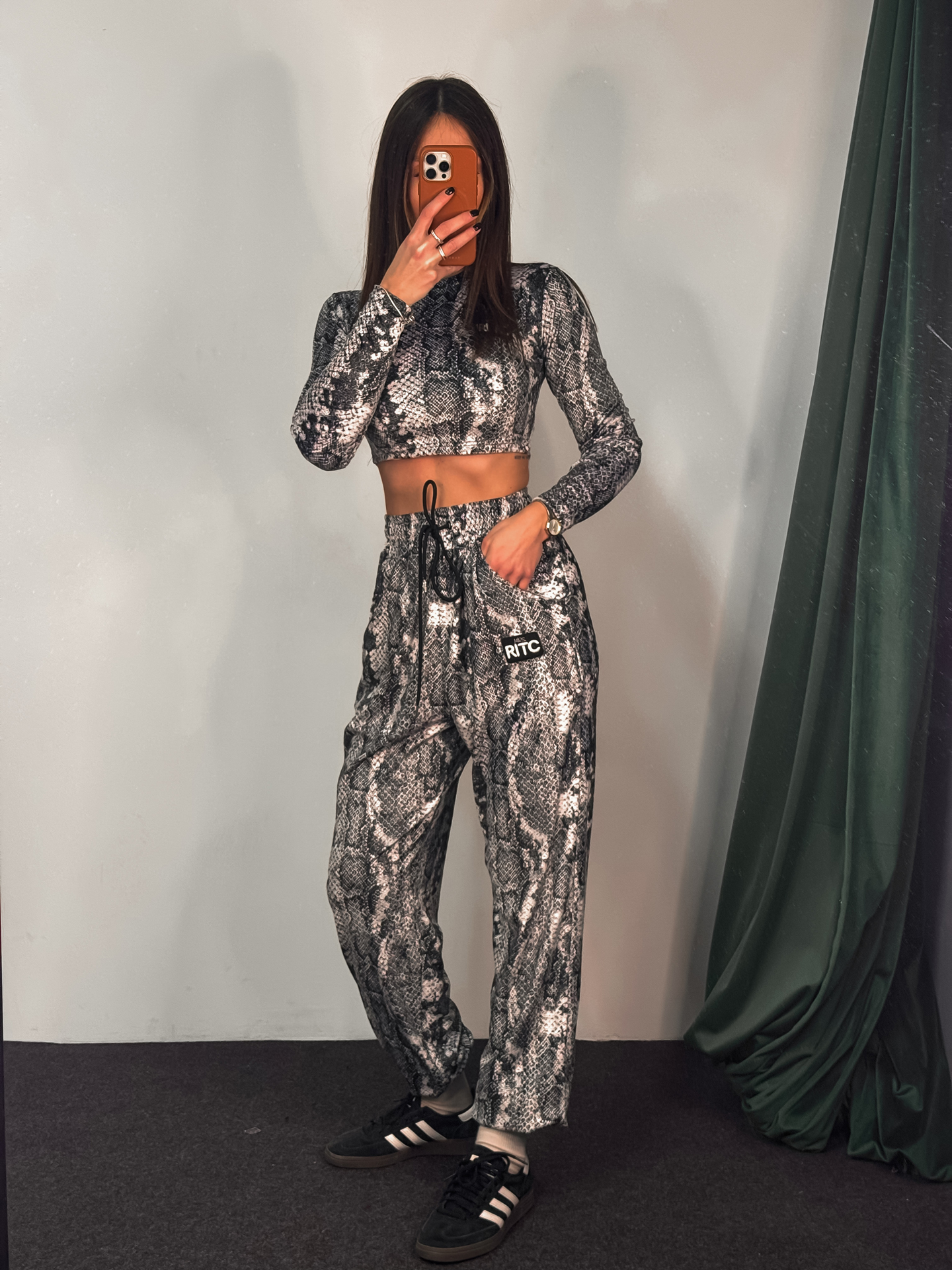 Βελουτέ Crop Longsleeve Set Nina White Snake Skin Print