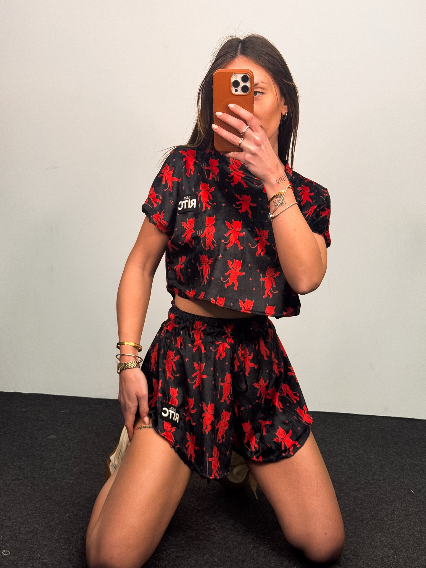 Βελουτέ Σετ Shorts Greta Black Red Devil Print