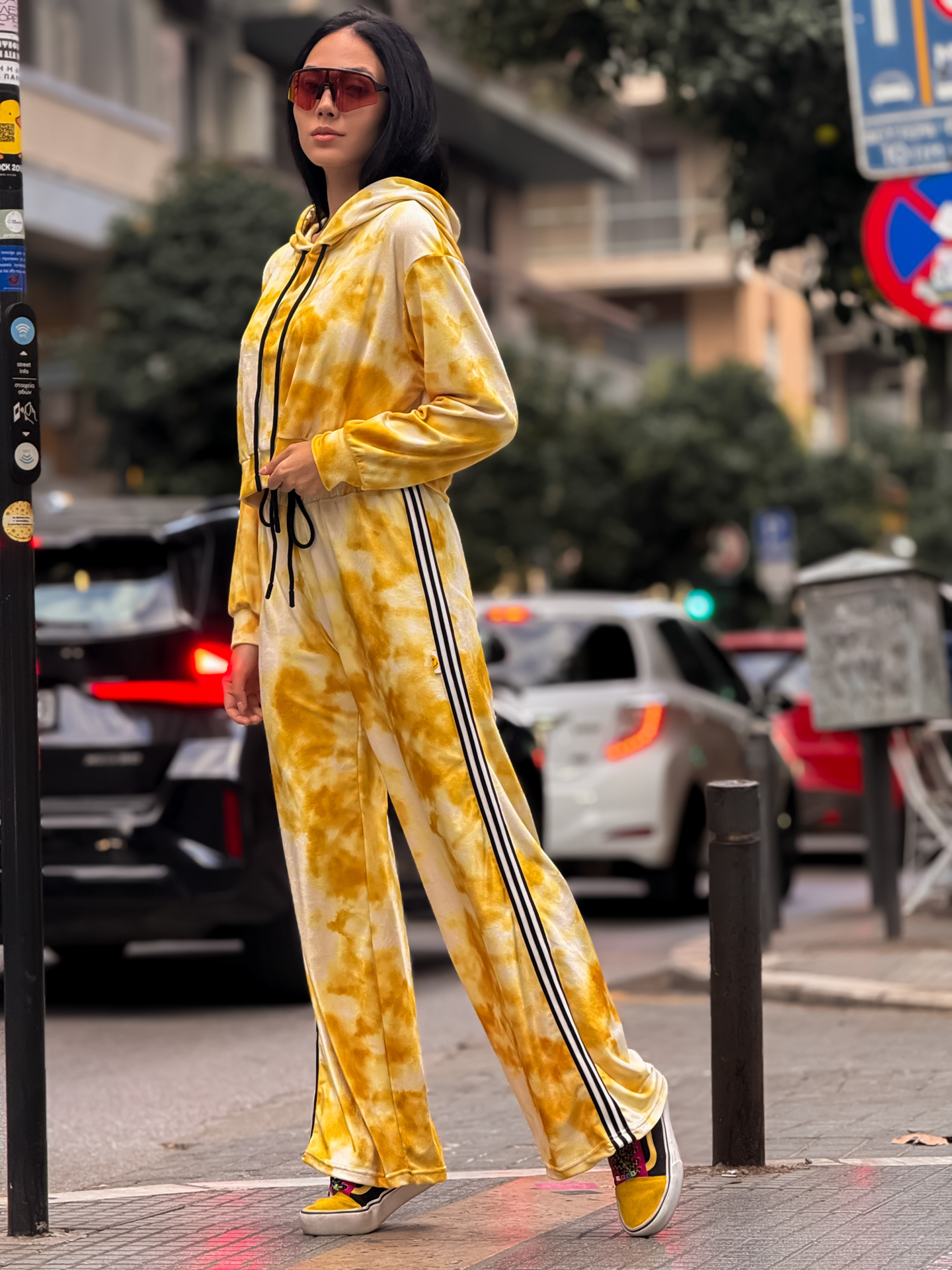 Fashion Limousine | Yellow Tie Dye Print Velvet Set Angie