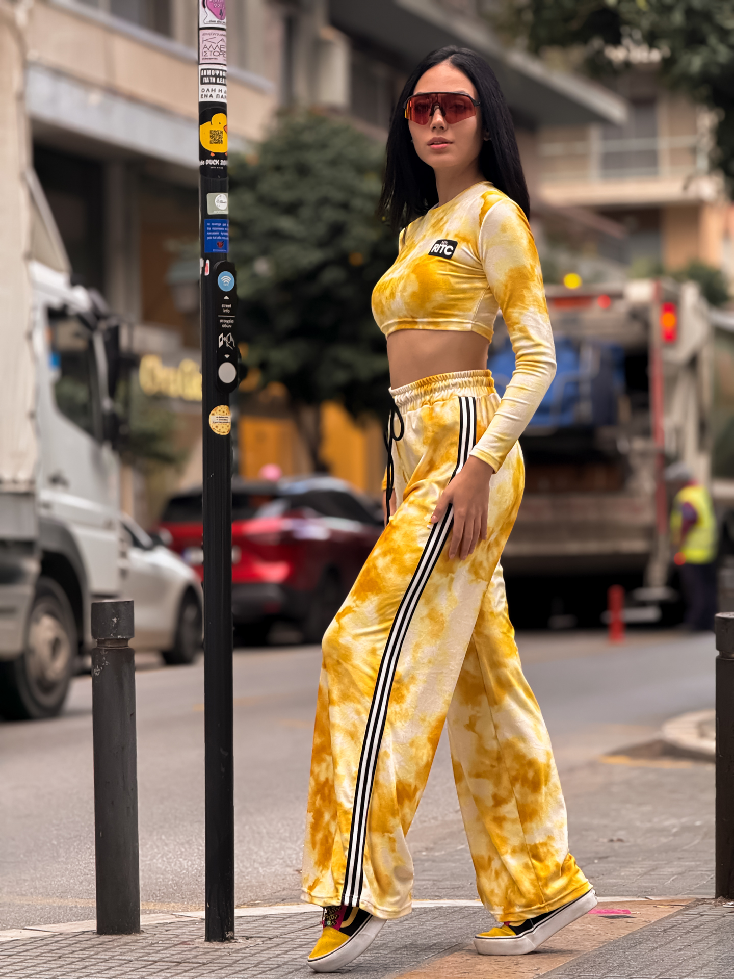 Fashion Limousine | Yellow Tie Dye Print Velvet Set Gemma